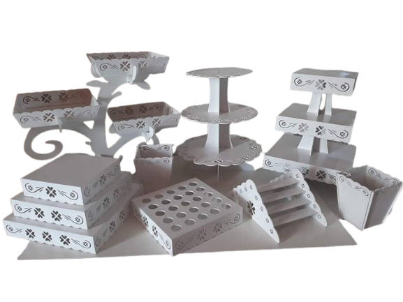Kit Provençal 9 peças, em MDF branco com as bordas queimadas